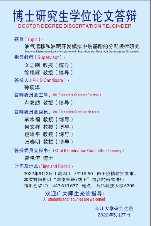 2022年6月博士研究生毕业答辩公告(1)