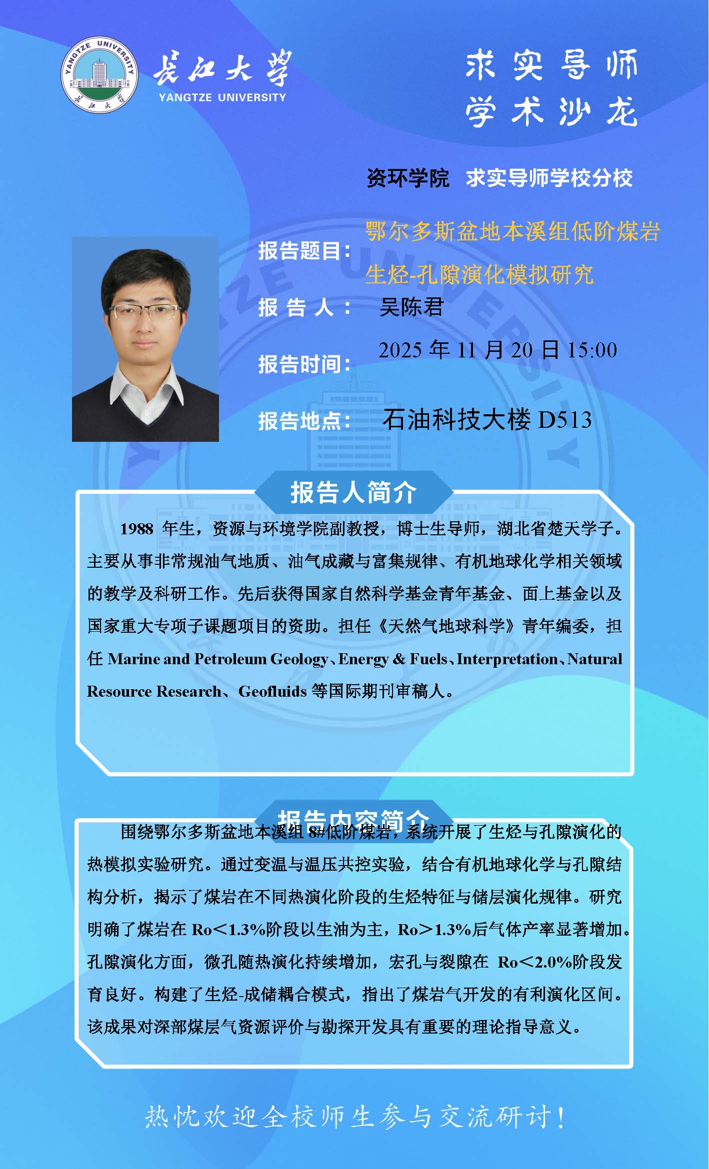 2025-2026学年“求实导师学术沙龙”讲座信息(吴陈君)