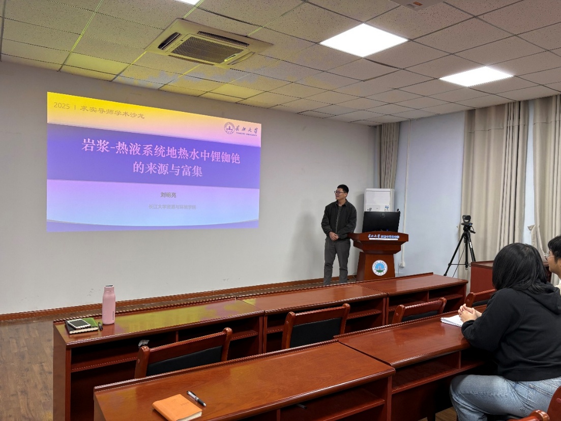 刘明亮副教授将大家的视野引向地球深部,作了题为《岩浆-热液地热水中锂铷铯的来源与富集》的前沿学术报告。他聚焦新能源产业至关重要的战略性稀有金属锂、铷、铯,指出富集这些元素的高温地热水已成为一种新兴的潜在资源。刘教授基于全球典型地热系统的系统性数据,深入辨析了“水-岩反应主导”与“深部岩浆流体输入主导”两种主流观点的证据与争议,进而提出了一个多阶段、多因素控制的综合富集演化模型。该研究不仅为地热型稀有金属资源的勘查与评价提供了关键理论依据,也深化了对地球内部物质与能量传输过程的理解。