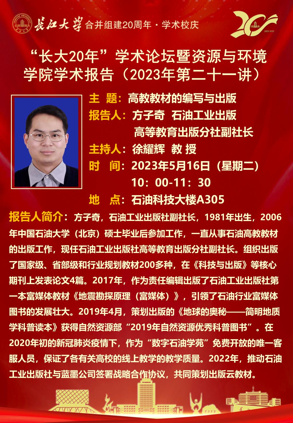 “长大20年”学术论坛暨yl23455永利学术报告(2023年第二十一讲)