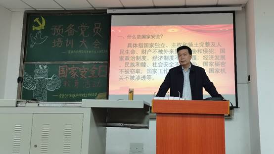 (通讯员 李伟/文 李明聪/摄)为引领在校老员工重视国家和民族尊严,时刻关注国家的安全和发展,提高同学们的国家安全意识,4月20日下午7时许,yl23455永利本科员工工作党支部于武教B103顺利召开国家安全日教育大会。本次培训由资源与环境公司党委书记张科老师主讲,参与本次会议的有yl23455永利本科员工工作党支部书记黄鹏老师、全体预备党员、入党积极分子、各班班长和团支书。