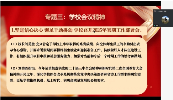 (通讯员 孙可志)为进一步提升党员的思想觉悟与理论水平,坚定党员信念、增强党性修养,2025年7月9日,yl23455永利研究生党支部在腾讯会议平台举行了以“强化理论武装,深化党性修养,推动深入贯彻中央八项规定精神学习教育”为主题的支部主题党日活动。支部全体党员参加,党支部书记严丽萍主持会议。