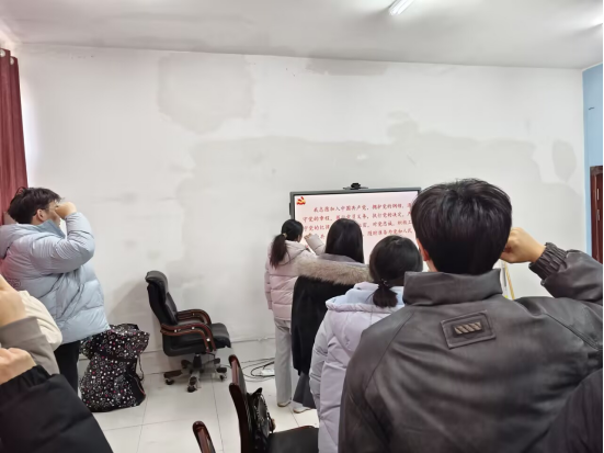全体党员面向党旗,高举右拳,在领誓人带领下重温入党誓词。“我志愿加入中国共产党……永不叛党!”铿锵誓言回荡会场,彰显了青年党员对党的无限忠诚与为共产主义事业奋斗终身的坚定决心。