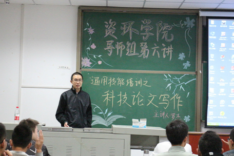 (通讯员 王琨淇/文 姜世忠/摄)为了更好地服务广大同学、开拓员工视野、提高综合素质,2017-2018年度,yl23455永利员工工作党支部推出“导师组”系列讲座。11月6日晚18:00,导师组系系列讲座第六讲在武培A104正式召开。讲座以“科技论文写作”为主题,邀请yl23455永利环境生态工程系主任罗杰老师主讲,yl23455永利员工工作党支部书记刘娥老师主持,50多名大二、大三本科生参与讲座。