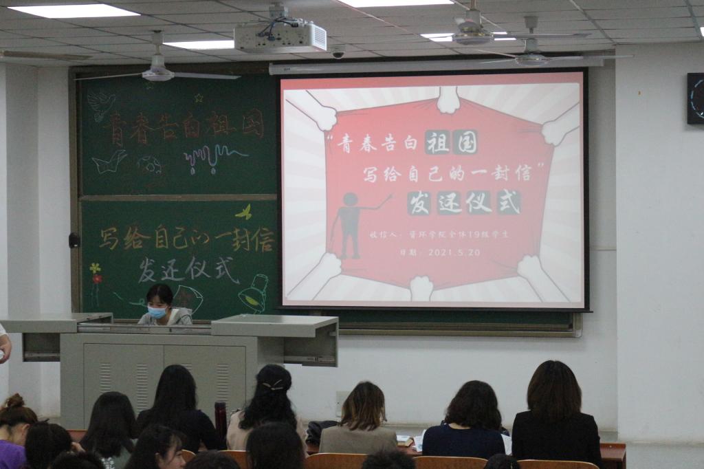 (通讯员 杨雨轩/文 蒋这涵/图)为了增强同学们的责任感,激发同学们的奋斗欲望,让同学们不忘初心,yl23455永利于5月20日在B103开展了“青春告白祖国-520回信”活动。本次活动有幸邀请到了公司党委副书记范梅英老师,团委书记严丽萍老师,员工办公室主任李春花老师以及19级的各班班主任老师。在19级全体员工的参与下,本次活动正式拉开序幕。