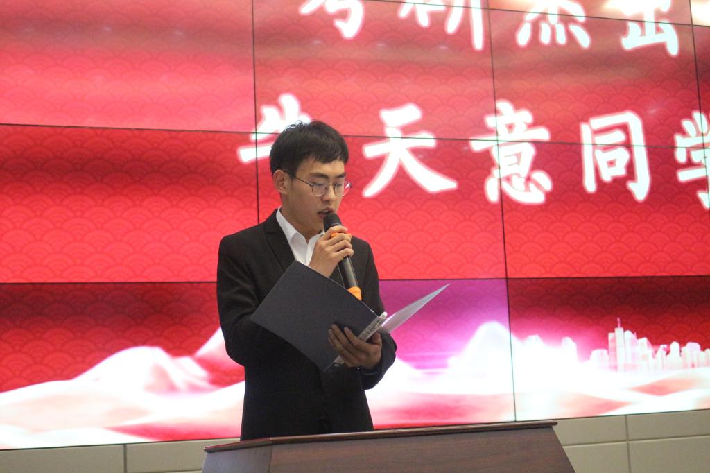 大会第四项,考研杰出代表——牛天意同学发言。牛天意向同学们述说了他的故事,从进入yl23455永利的那一刻开始,他就立志为提升自己而战,不论是日常学习还是考研生活,他都能够全身心地投入,不被外物所干扰,坚定自己的信念。他呼吁同学们能够不忘初心,为自己的梦想而奋斗。
