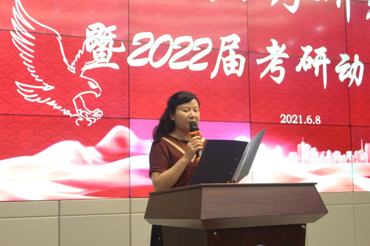 大会第七项,导师代表谢小敏教授发言。谢小敏教授向同学们解读了她的考研历程。去外面的世界看看,去追求自己的梦想是谢小敏教授考研的心路历程。同时她也就刘于民同学的选择问题表达了她的看法:不论是踏实地做一名工作的普通本科生享受着难以提升的待遇,亦或是倾向于提升自己去追求更好的选择,一切都得是自己思考再三而后的抉择,学会选择,才能更好地实现自己的人生梦。
