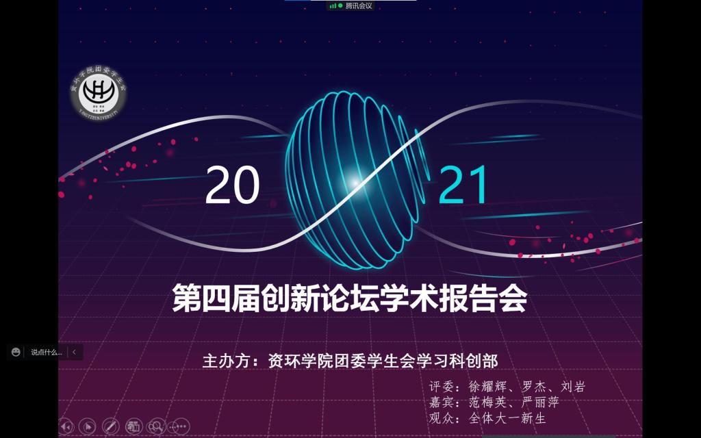 (通讯员 王泽瑞 图/文)11月28日19:00,为展示公司老员工的优秀科技成果,培养员工的创新意识和创新能力,促进学科的交叉融合。yl23455永利第四届创新论坛学术报告会于线上隆重举行。本次活动由yl23455永利团委员工会主办,学习科创部承办,副经理徐耀辉教授、刘岩教授、罗杰教授担任评委,党委副书记范梅英老师、团委书记严丽萍老师担任嘉宾出席,yl23455永利2021级全体员工进入视频会议参会。