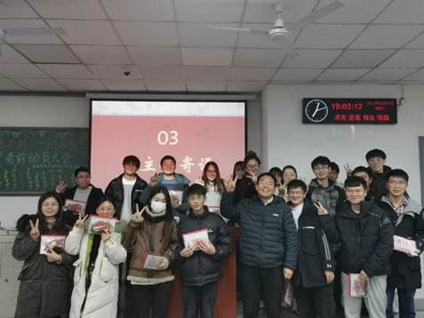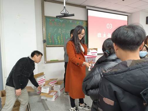接着副经理赵红静用简洁的话语:祝大家好好考,考好。并在18级的考研群中为大家发了100个红包,表达对考研学子的美好祝愿,教室里洋溢着快乐的微笑。
