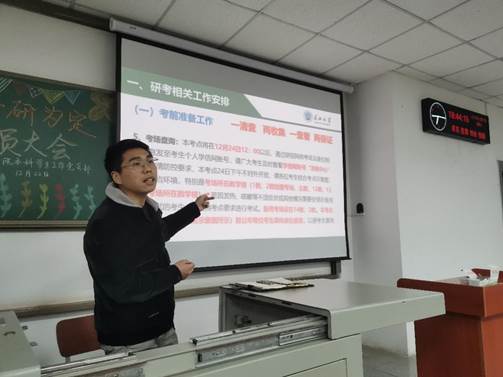 首先员工辅导员黄鹏老师就考研相关工作安排,如考前准备工作、员工进入考场的流程及考风考纪等,进行详细的解说。告知同学们:科学防疫不松懈,诚信考试须谨记。叮嘱大家注意防寒保暖,并表达考试期间他会全程陪同,有任何问题随时打电话与他取得联系,让考研学子们感受到了温暖。