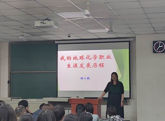 在大会第三项中,公司各研究团队的导师代表分别上台进行了导师介绍,地球化学系的吴越老师和陈果老师分别介绍了岩矿地球化学和有机地球化学的导师团队,优秀的团队力量和先进的实验设备都让大家叹为观止。而水环系的贺美老师,陈燕飞老师,陈彦美老师对于水环境,地表水以及地下水各方面的详细介绍,再次获得了现场的掌声雷动,尤其是陈燕飞老师慷慨激昂的一句“选择水文水资源专业就是选择美好的人生!”,更是引起了同学们的热烈反响。