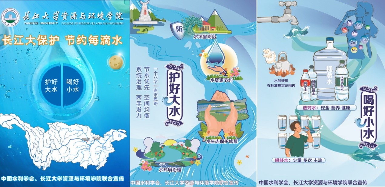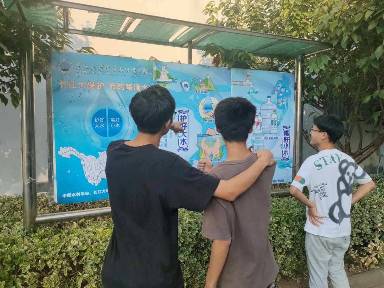 活动进行中,张贴海报的线下宣传方式获得了较好的效果。通过在教学楼、食堂、寝室门口张贴海报,挂图宣传习近平生态文明思想、习近平总书记关于治水的重要论述以及以“共抓大保护”为导向深入推动长江经济带发展战略。并由资源与环境学的志愿者向同学们讲解展示数字孪生流域、河湖生态保护、防洪减灾等水利科普知识,解答同学们的相关问题,帮助同学们了解水资源发展的背景和现状。同学们在参与过程中学习了节水常识、提高了保护长江的意识,并纷纷表示将共同为长江大保护做出努力!