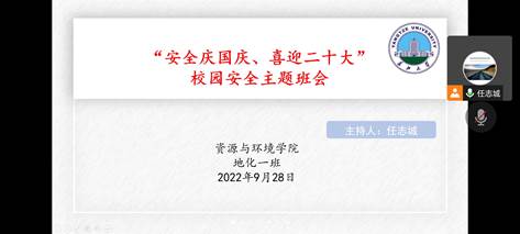 (通讯员 周繁艳 文/图)国庆佳节在即,为了提高员工的假期安全意识,2022年9月28日晚上20:00,yl23455永利研究生地化一班线上进行了“安全庆国庆,喜迎二十大”的校园安全主题班会。