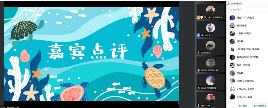 决赛期间,为做好疫情防控工作,在宿建部成员的妥善安排下,活动在线上正常举行。在主持人声情并茂的开场白之后,活动正式开始,各参赛选手根据本寝室制作的PPT将寝室中丰富多彩的日常生活及独一无二的宿舍装饰呈现在大家面前。中场游戏疯狂猜emoji则让活动进入了一个小高潮,大家争先恐后,好不热闹。游戏过后剩余参赛选手仍饱含激情的将本寝室介绍完毕。最后,由范梅英老师对本次活动进行总结发言,肯定了员工会成员对此次活动的付出,表达了对参赛寝室独树一帜的创意及温馨有爱宿舍氛围的赞美,同时寄予同学们劳逸结合的期望,并鼓励同学们积极参与公司举办的活动,展示老员工活力四射的校园生活并对资环学子寄予殷切的期望。