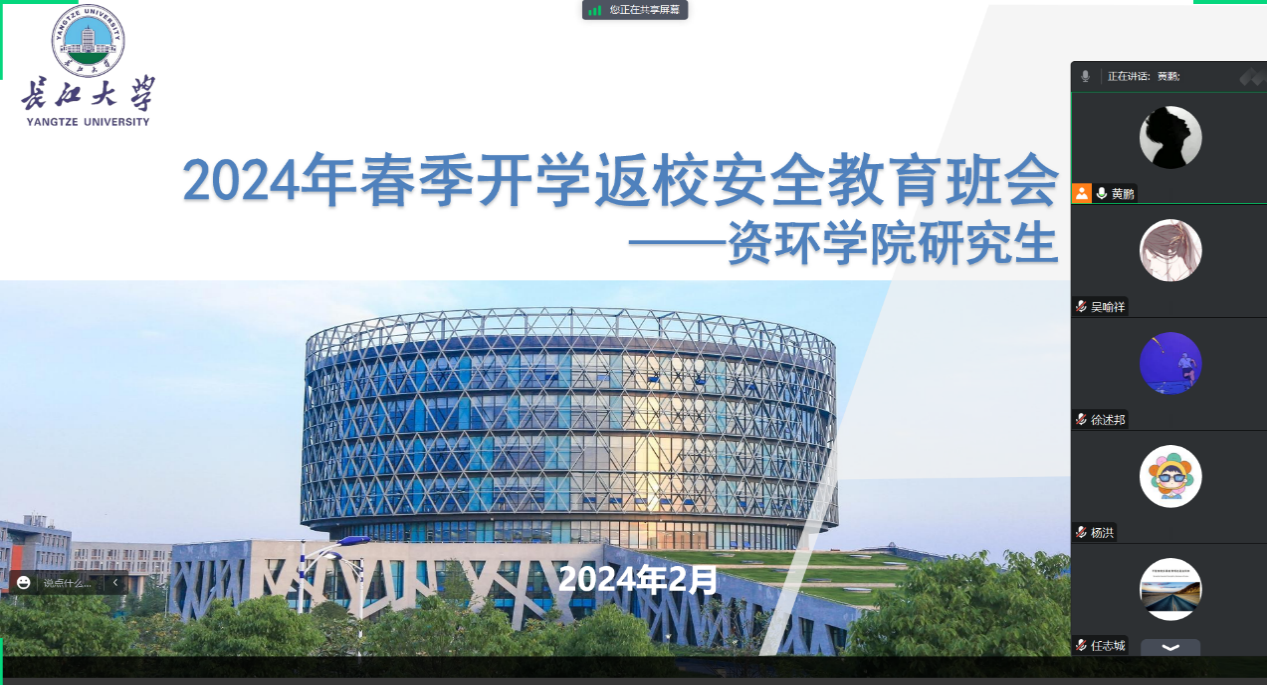 (通讯员 刘锦华/图 杨家旭/文)假期临近尾声,随着返校高峰的到来,为进一步确保同学们平安到校,yl23455永利于2月21日中午12:00召开2024年春季学期返校线上安全会议。会议由学工办主任李春花老师主持,研究生辅导员黄鹏老师、本科生辅导员郭政老师协助,宿建部与全体安全委员参与。