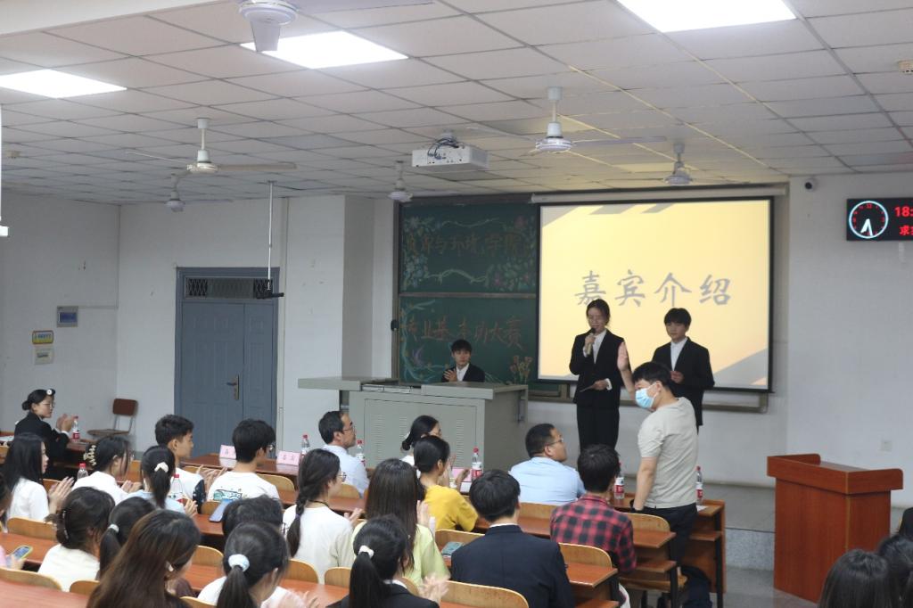 在介绍完各位评委嘉宾后,主持人开始向大家介绍比赛规则,参赛选手根据赛前抽签顺序依次上台,他们的答辩顺序为“未定名队”、“乘风破浪打工队”、“看似漫不经心队”、“泰酷辣队”、“勇往直前队”、“农夫水井队”, 每个小组派一人进行PPT搭配模型讲解,讲解结束后评委老师将会对其所涉及领域做出提问。