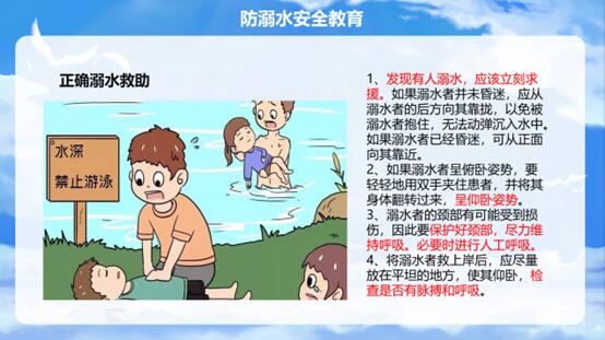 其次,防溺水安全教育。每年夏季,溺水事故常有发生。老员工必须充分了解游泳安全知识,学会正确的游泳姿势和呼吸方法,以及如何保持冷静,在紧急情况下采取正确的救援措施。