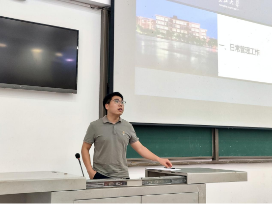 曾艳涛老师就研究生教学管理全流程为新生作了详细解读,着重强调新生须在导师指导下制定个人培养方案。她系统介绍了教务系统选课的操作步骤和注意事项,并提出“班长统筹收集—集中对接教务” 的问题反馈机制,建议同学们强化自主责任意识,主动与导师、班主任开展学业沟通。