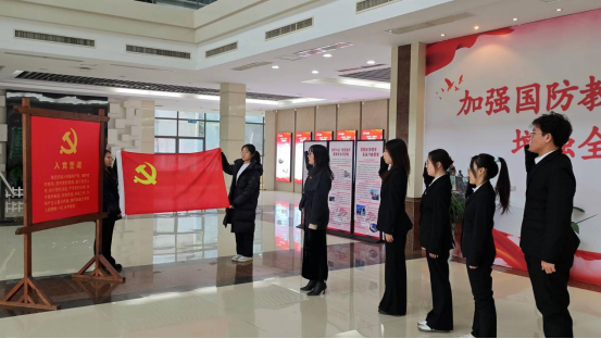 活动中,讲解员以详实的史料为线索,系统梳理了从革命战争年代到和平建设时期我国国防教育的发展脉络。同志们跟随讲解,仿佛重回那段岁月,深切体会到在物资匮乏、技术落后的条件下,国防事业从无到有、由弱变强的艰辛与伟大。在吴运铎烈士事迹展示区,大家久久驻足,深入了解这位投身革命、为国奉献的兵工英雄,感悟革命先辈忠诚于党、不畏艰险的崇高精神。在李春花老师的带领下,全体同志面向党旗庄严宣誓,铿锵誓言回荡其间,既是对革命先辈的深切缅怀,更是对初心使命的郑重承诺,充分彰显了青年学子矢志不渝跟党走的坚定信念。