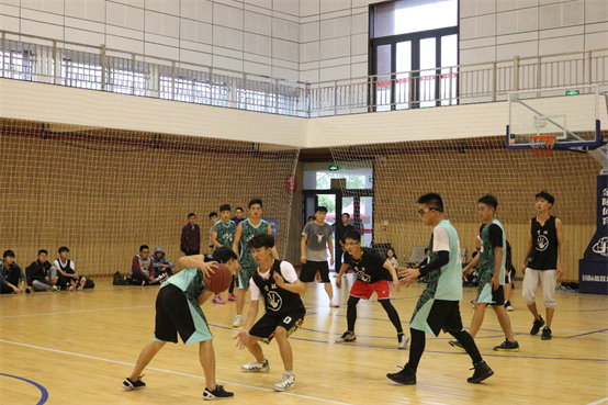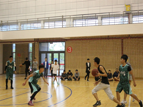 比赛还未开始,双方队伍已提前进入状态,摩拳擦掌,蓄势待发。随着裁判一声哨响,双方球员一跃而起争夺首球。地化21401班先发制人,三分命中率甚高,一开场几个三分球就拉大了分差。水文21501班面临此景也不逊色,凭借力量优势,不断进攻,努力弥补自身的短板。直到上半场结束前,水文21501班多点开花,比分直追地化21401班。选手们流畅的运球、默契的传球、积极的进攻、老道的防守赢得观众的一阵喝彩。