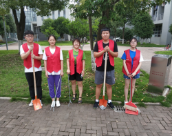 yl23455永利“百·千·万”资助育人工程旨在为每一位困难员工提供最大助力,将关爱传递给所有同学。“千人励志爱心行”是引领接受国家资助的优秀学子发扬感恩精神,通过公益爱心活动回报校园,将爱心传递给更多学子。6月20日下午,几名志愿者各自携带工具,在校区管理中心西侧的yl23455永利负责区域,热火朝天地展开了清洁工作。初夏的艳阳没有阻止他们奉献的热情,象征关爱与活力的红马甲在阳光下焕发着鲜艳的色彩。志愿者们耐心清理着路面上的纸屑烟头与草坪里的枯枝败叶,花费将近半个小时完成了区域的清洁任务并合影留念,留给他人一方洁净的生活环境。