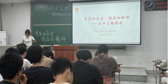 团会伊始,各班团支书带领团支部成员回顾了五四运动的历史背景和意义,强调了五四精神在新时代的重要性和价值,激励各班团员要铭记历史、砥砺前行,继续发扬五四运动的光荣传统和优良作风。