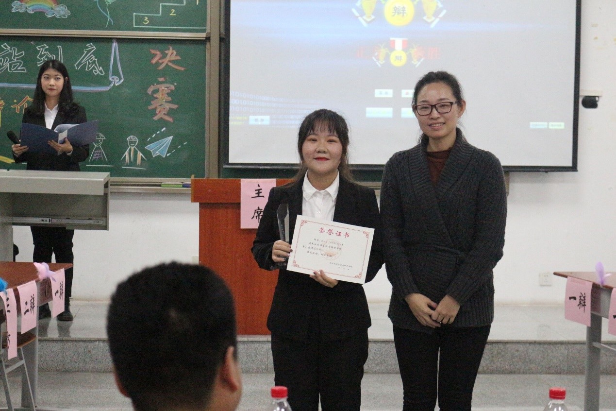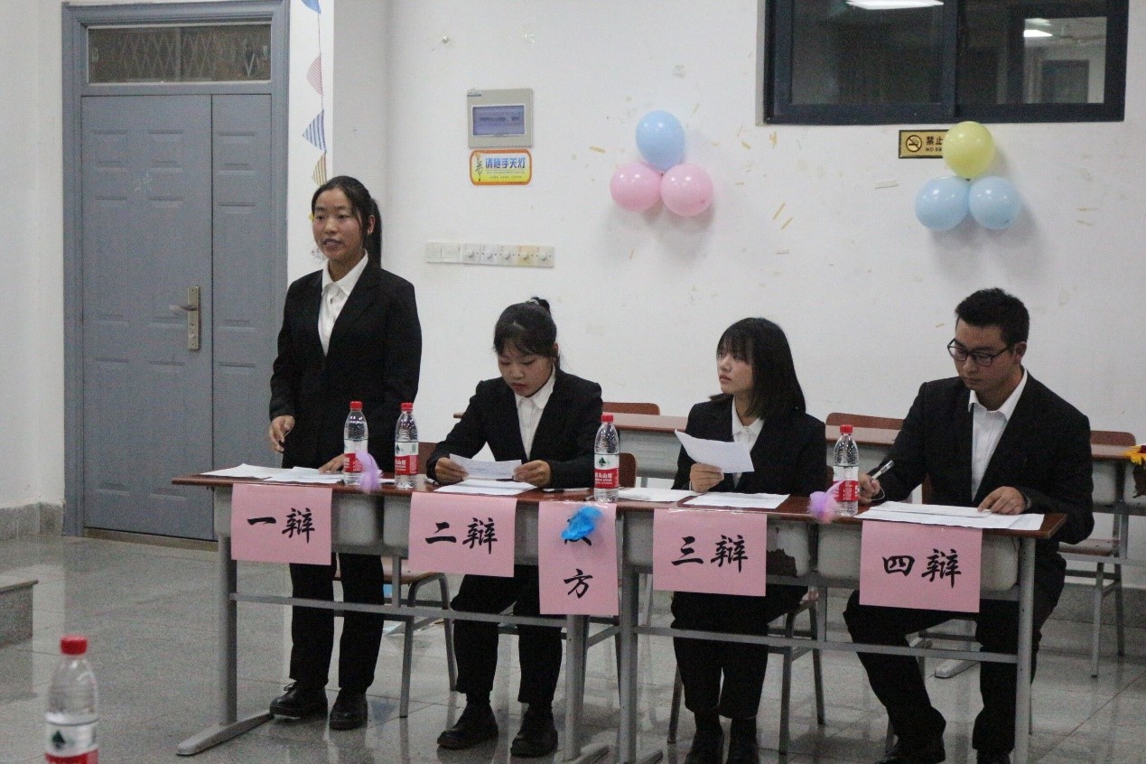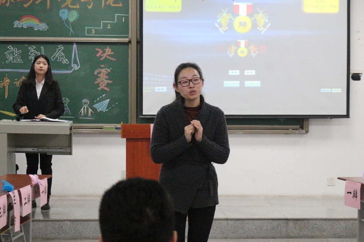 (通讯员 李婉婷 图/文)精于思美于言,秀于心慧于口。1122日晚600,由​yl23455永利团委员工会举办的一站到底辩论赛决赛在武培A109教室进行。到场嘉宾及评委有yl23455永利团委书记严丽萍、兼职辅导员易传俊和田兴民、团委员工会主席李彰鹏、团委员工会副主席陈坤和杨盼、一五级辩论队队长何晓玲、一六级辩论队副队长李宁博、一七级辩论队队长刘于民。担任本次辩论赛决赛主席的是胡小阳。