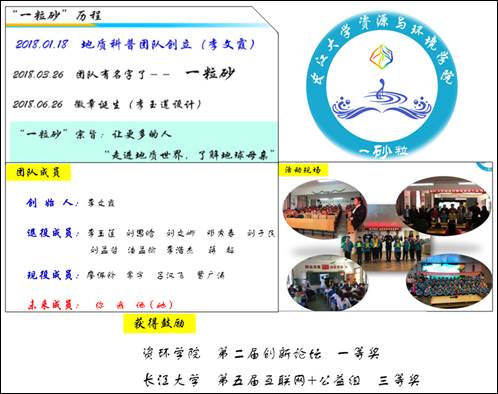 “一粒砂”地质科普团队自2018年1月创立以来,多次走进周边小学进行科普推广活动,积累了大量的地质科普经验。现诚挚招募致力于地质科普推广的小伙伴加入“一粒砂”,通过大家共同努力,让更多的人“走进地质世界,了解地球母亲”,热爱我们的地球,珍惜我们的环境!