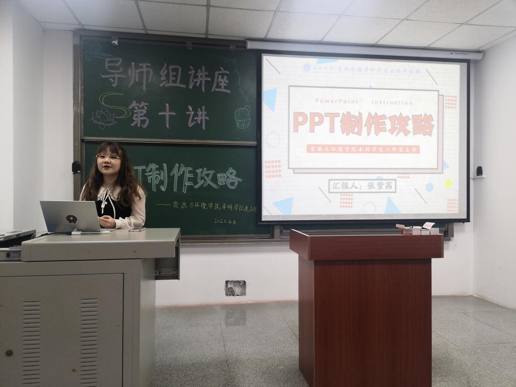 (通讯员 李如意)为了让刚开始接触PPT制作的大一员工能更加的得心应手,少走弯路。2021年4月8日晚7时整,yl23455永利本科员工工作党支部开展了导师组讲座第十讲。讲座由导师张紫茜同学为大家宣讲。yl23455永利全体大一员工参加。