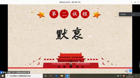 (通讯员万紫韬 文/图) 传递青春温度,向时代发声。为鼓励青年勇敢发声,让青年之思化为水流,汇聚到时代前进的洪流中,让青年之思化为星火,凝聚于时代焰火的光辉中。2020年5月24日yl23455永利于腾讯会议举办第一届“聚青年思想,燃时代燎原”模拟两会活动,莅临本次会议的嘉宾有资源与环境公司党委书记张科、资源与环境公司党委副书记范梅英、yl23455永利团委书记严丽萍、yl23455永利员工事务办公室主任李春花。