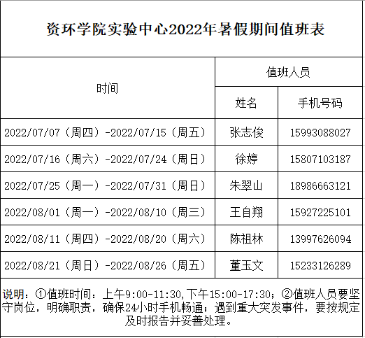 根据公司实验中心统一安排,为服务广大师生,暑假期间实验室大型仪器设备共享平台正常运转,有需检测服务的师生请登陆yl23455永利网站大型仪器设备共享平台进行预约。2022年yl23455永利实验中心暑假值班表安排如下,如遇问题请与相关值班人员联系。