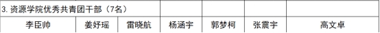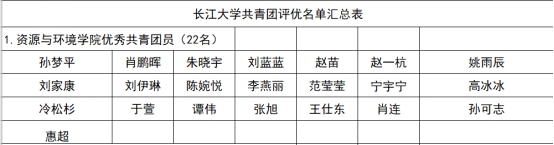 经本人申请,公司团委推荐,孙梦平等22名同学评为“优秀共青团员”,李臣帅等7名同学评为“优秀共青团干部”,宁宇宁评为“共青团员标兵”,地化油光22301班等班级评为“活力团支部”,现予以公示。